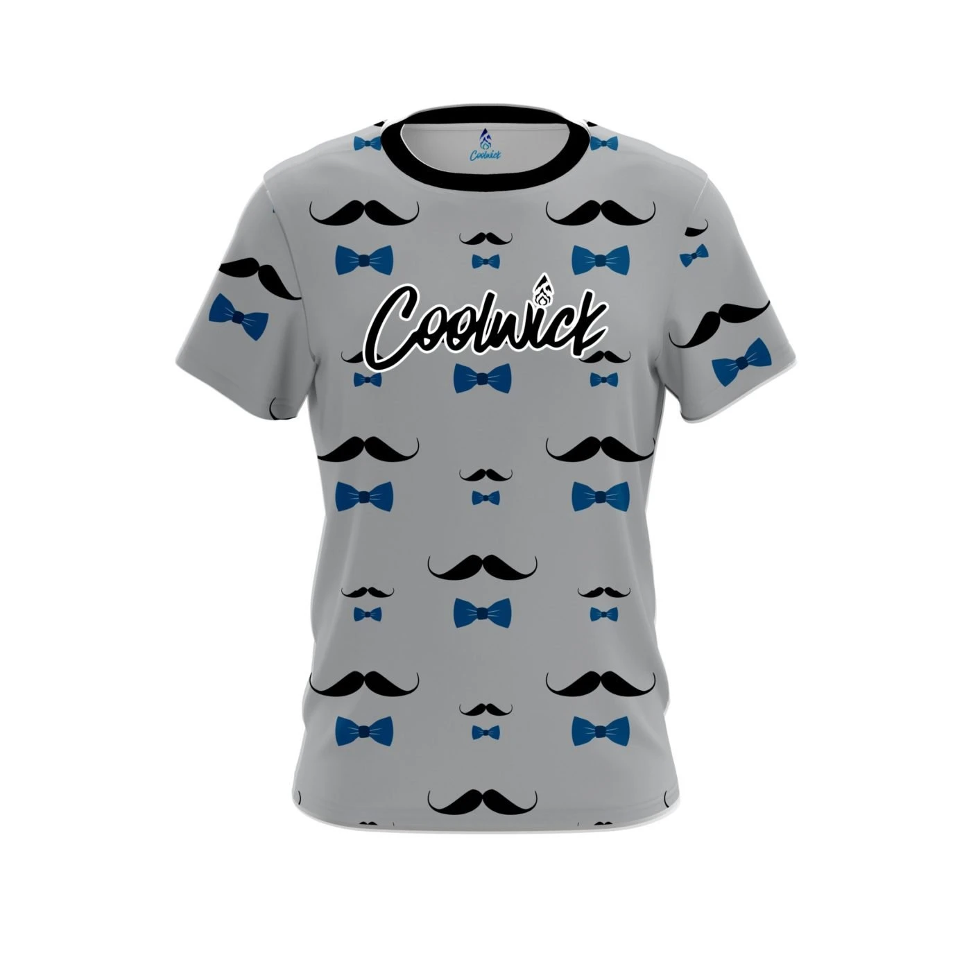 Stay 40% cooler with CoolWick. Our Signature Grey Blue Mustache CoolWick Bowling Jerseys are made of two different fabrics with the back being our CoolWick technology fabric that helps wick moisture away and helps air flow more easily through the fibers.